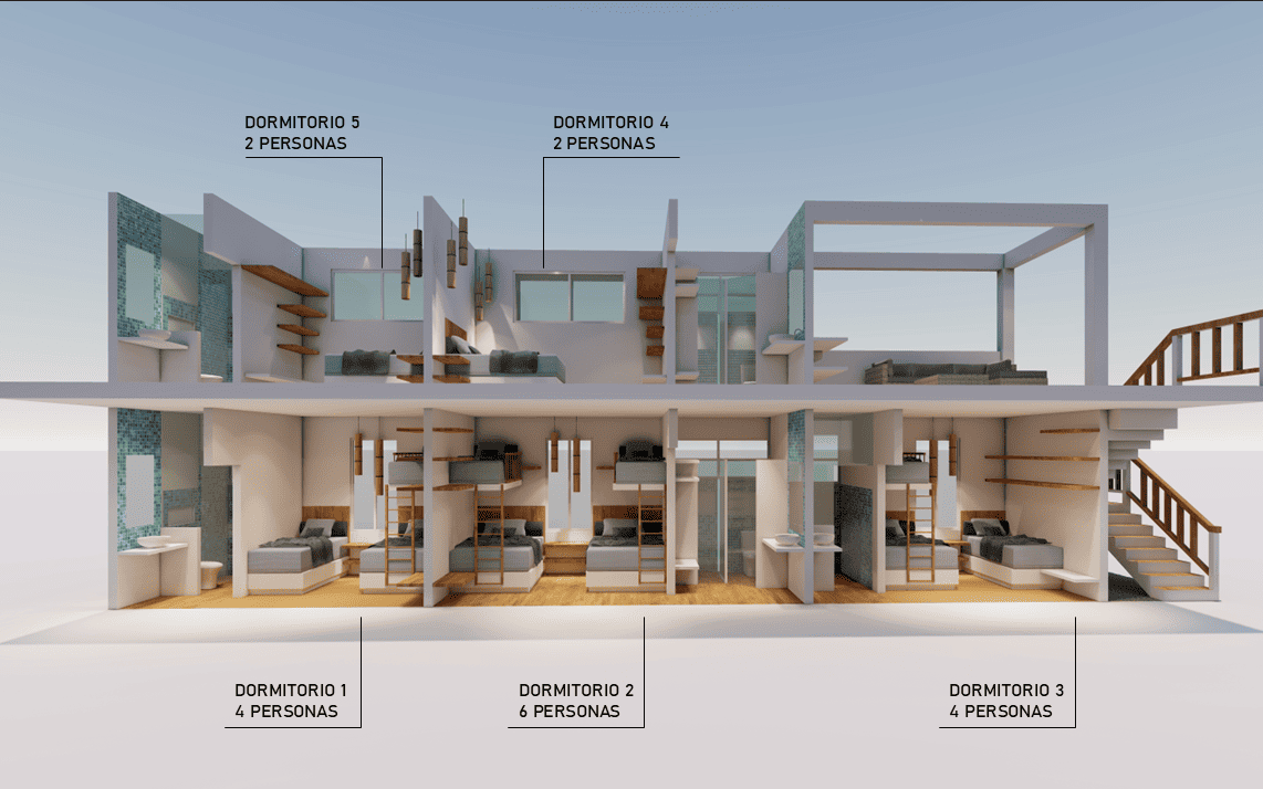 Con 5 amplias habitaciones podemos hospedar cómodamente hasta 18 personas, cada una con su propio baño, hay espacio para que todos disfruten de la comodidad y la privacidad.